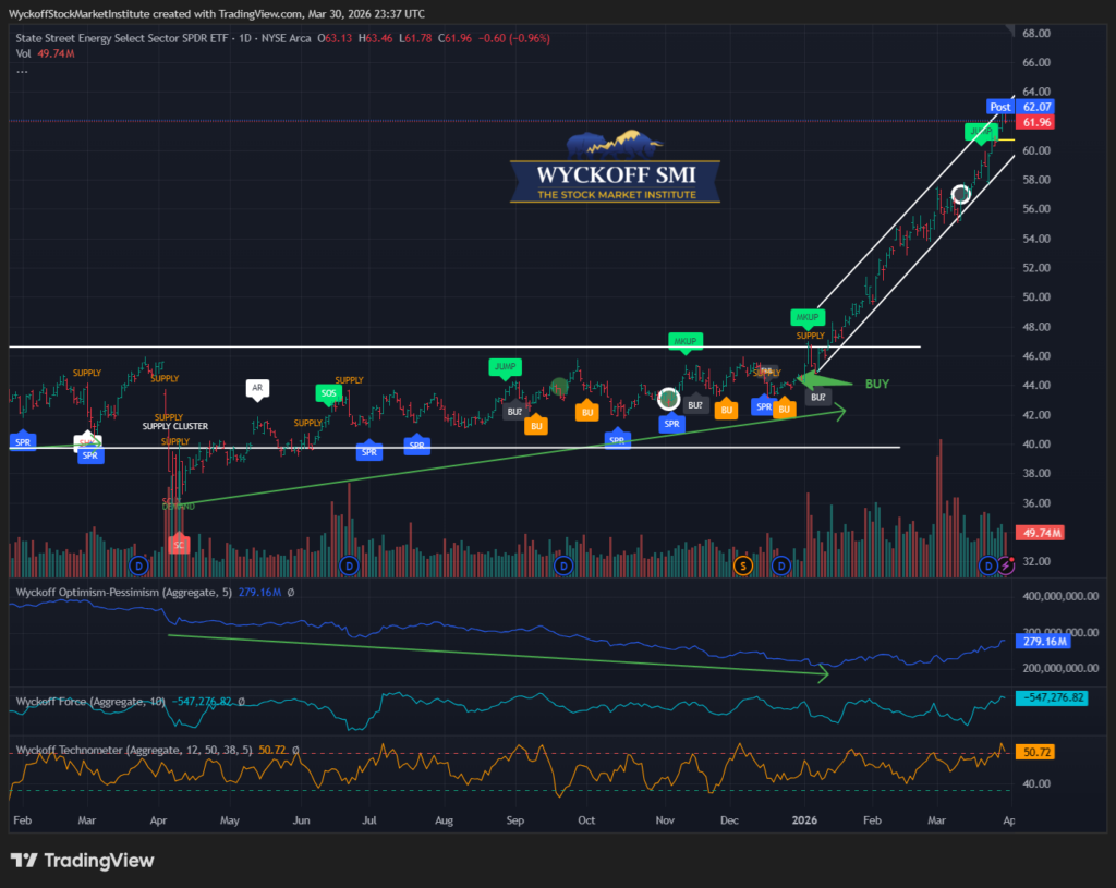 This report is for educational and informational purposes only and reflects interpretation of market behavior using the Wyckoff Method. It is not investment advice or a recommendation to buy or sell any security. Trading and investing involve risk and past performance is not indicative of future results. Individuals should conduct their own analysis and consult a qualified financial professional before making investment decisions. WyckoffSMI and its affiliates may hold positions in securities discussed.