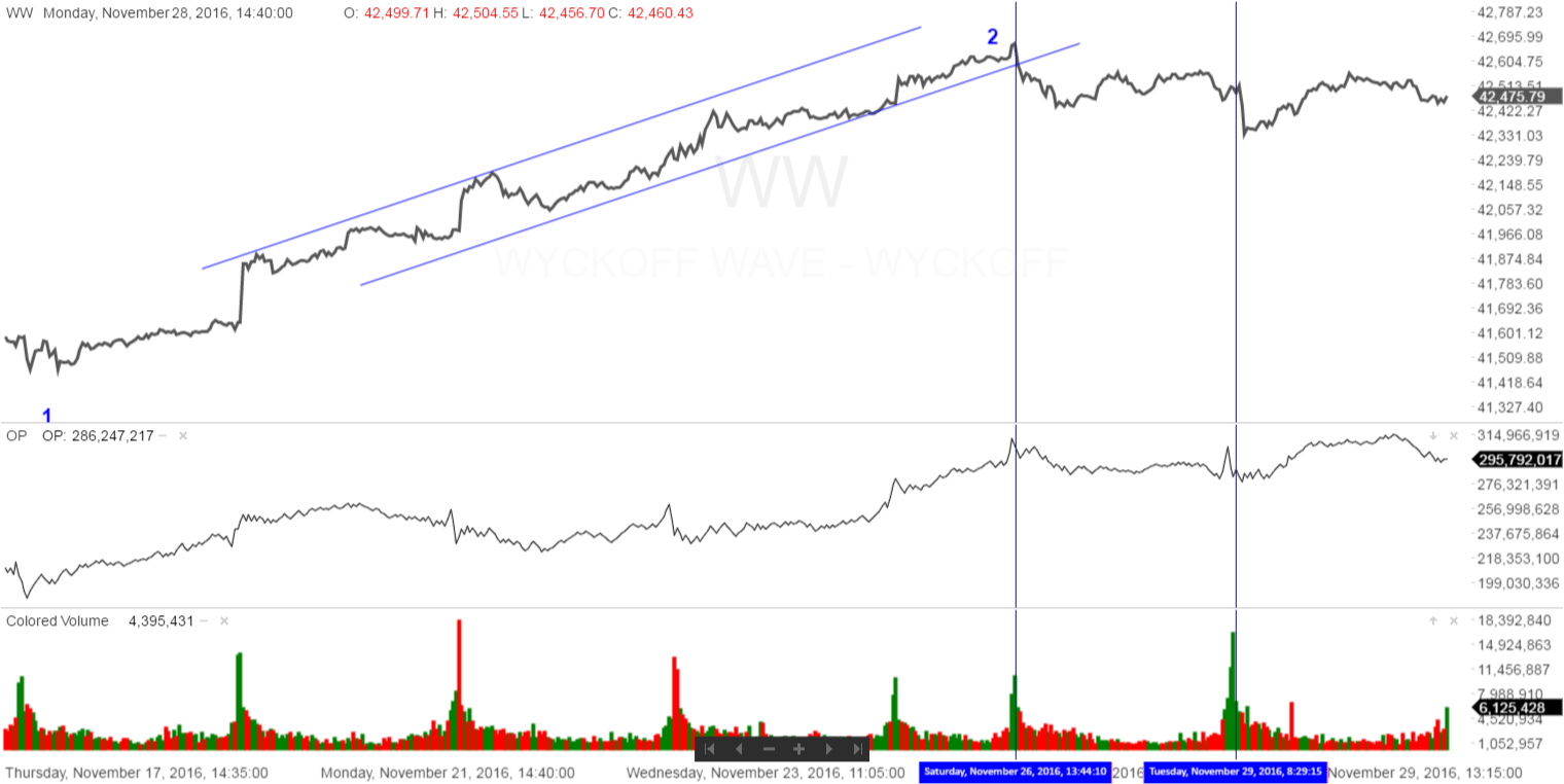 The Intra-day Optimism-Pessimism Index is in relative harmony with the Wyckoff Wave.