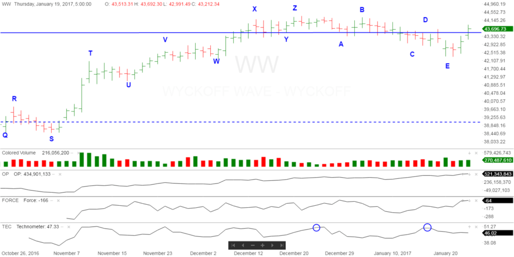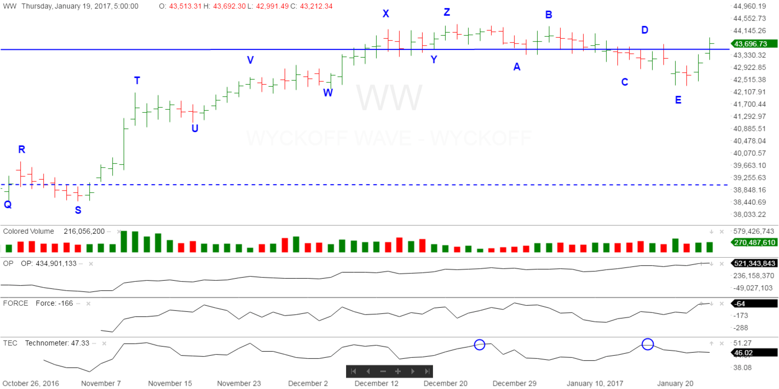 The Nasdaq and S&P 500 were both higher almost 1% today, and stronger than the Wyckoff Wave.