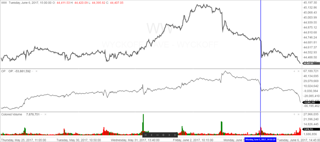 A review of the intra-day waves shows the Wave opening lower, then spending the day trading sideways before a late bout of selling.